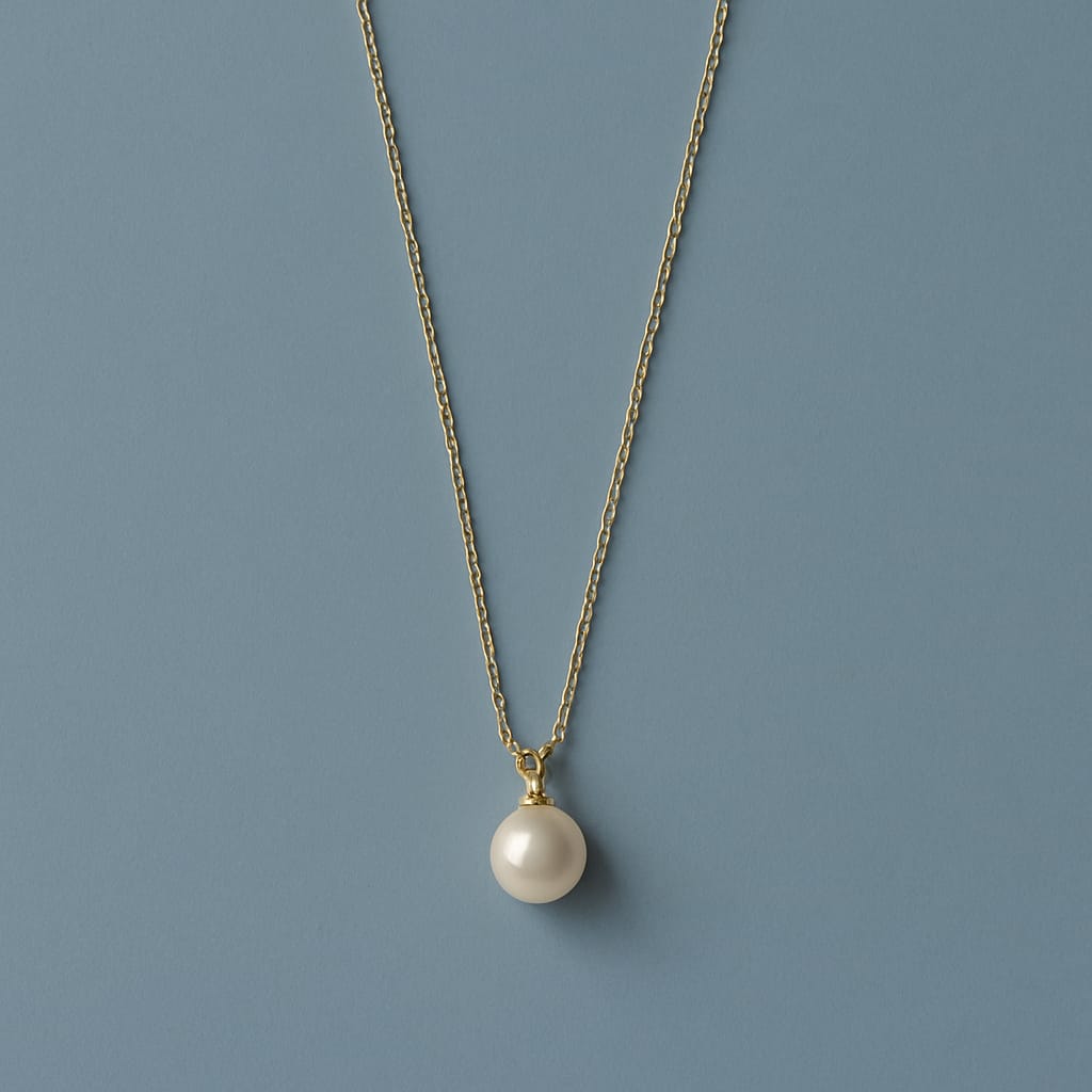 This exquisite necklace features a classic, lustrous white pearl suspended from a delicate gold-tone chain. The timeless design makes it a versatile piece perfect for both everyday wear and special occasions. The single, round pearl provides a touch of sophistication and natural beauty, while the slender chain offers a minimalist and elegant look. Ideal for gifting or adding a touch of understated glamour to any outfit.